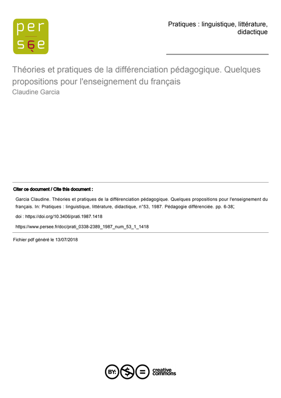Théories et pratiques de la différenciation pédagogique