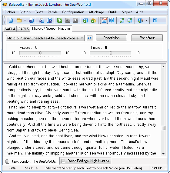 Le programme Balabolka permet la lecture des fichiers texte à haute voix